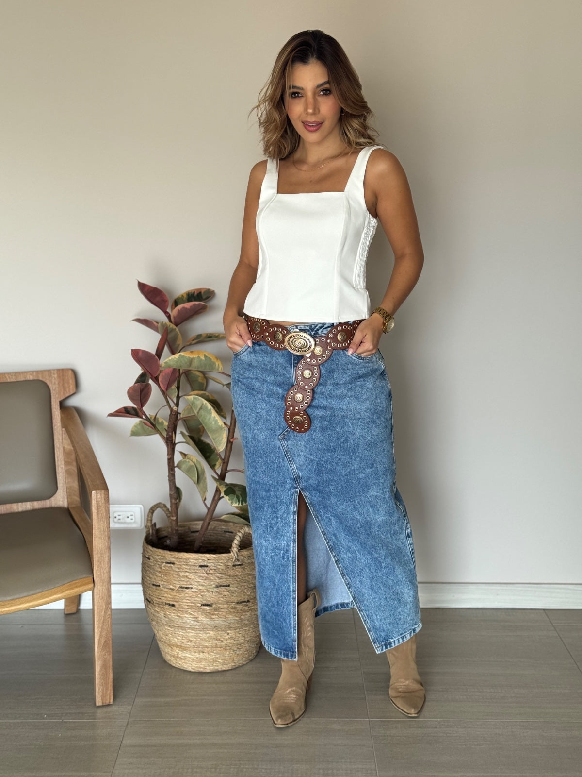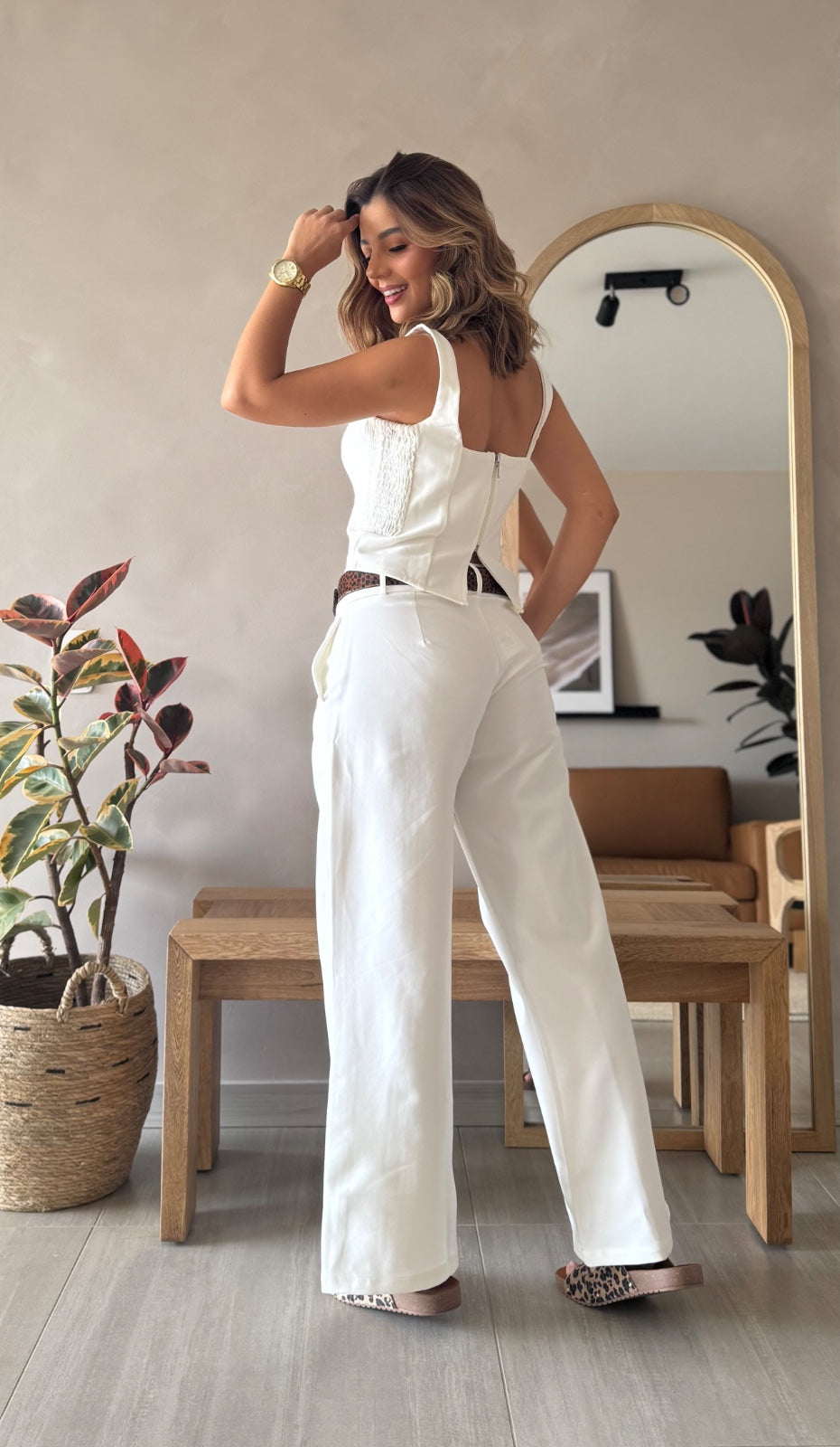 La elegancia minimalista hecha prenda. Nuestra blusa Atenea en tono blanco es versátil, delicada y sofisticada. Confeccionada en punto Roma, se ajusta con comodidad y realza tu silueta. Llévala con el pantalón Atenea y crea un set impecable para cualquier ocasión.