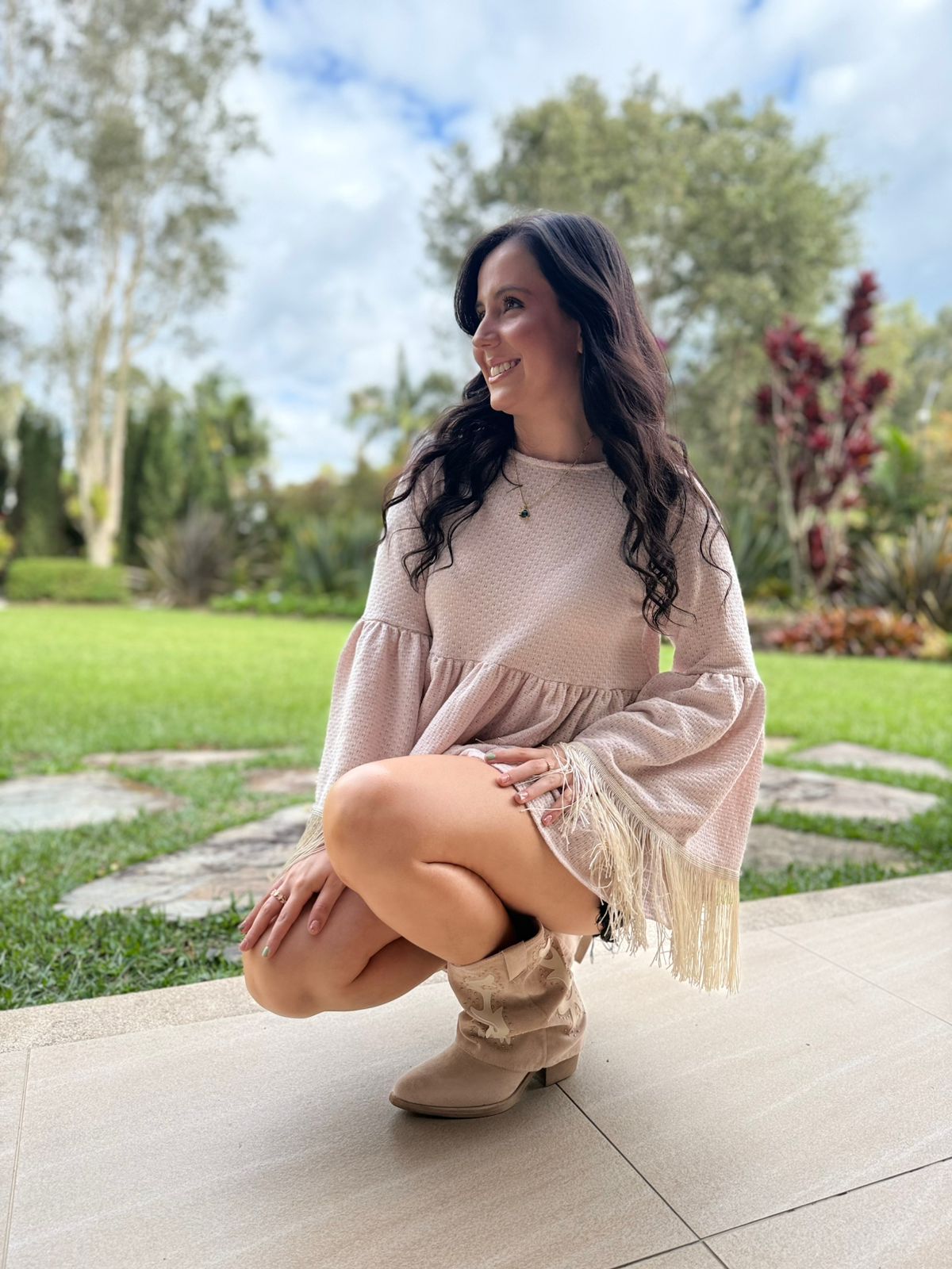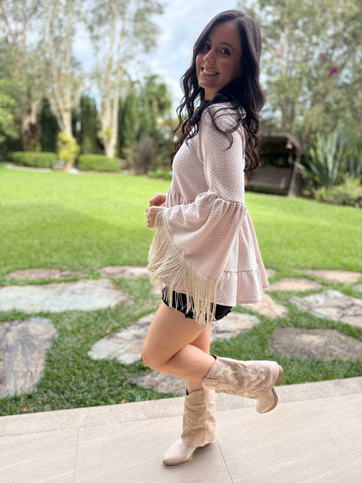 Una prenda que combina elegancia y frescura. Su color nude la convierte en un básico sofisticado, mientras que las mangas amplias y el delicado detalle en sus mangas elevan cualquier look. Ideal para eventos de día, almuerzos especiales o salidas con amigas.
