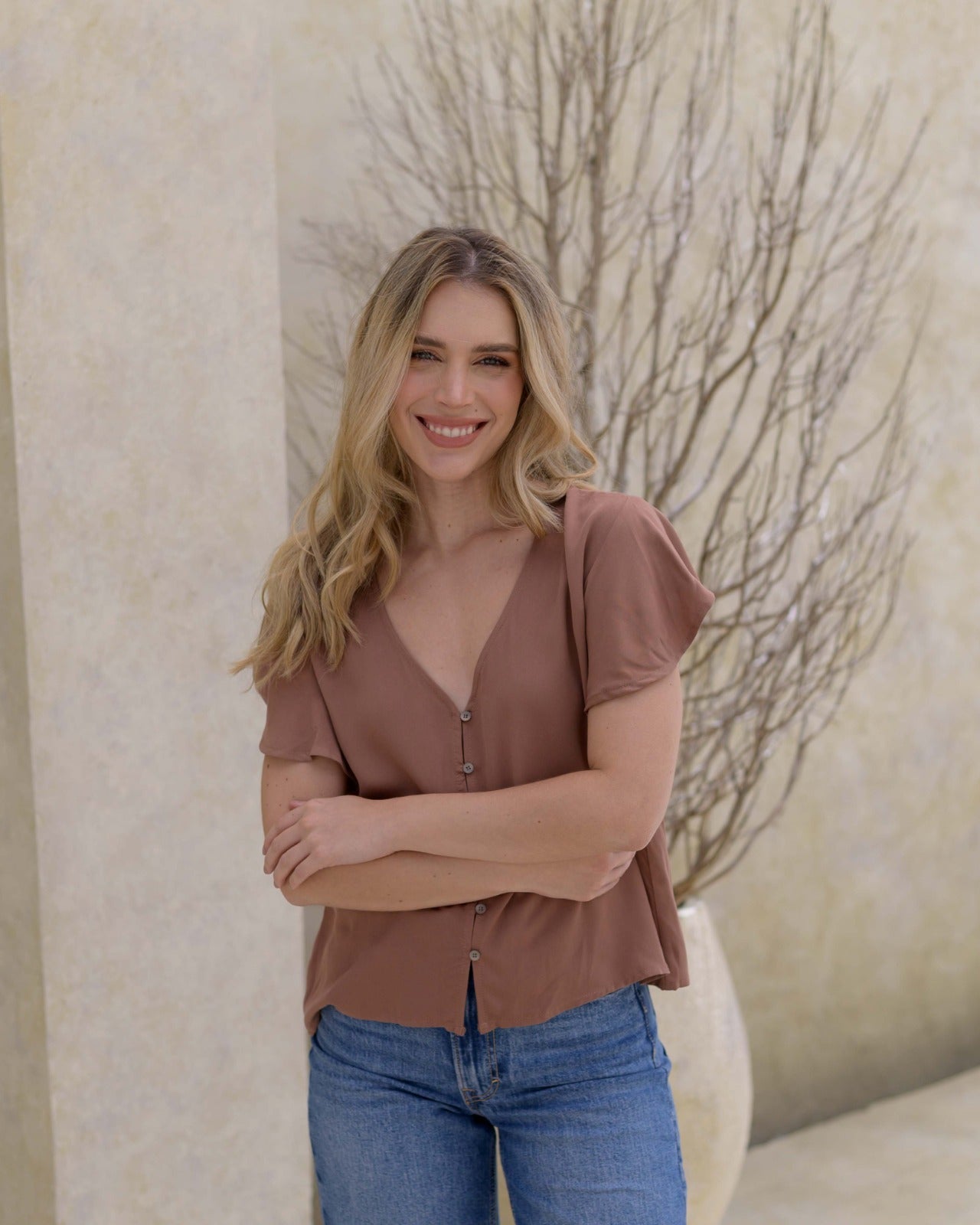 Esta blusa Niza mocca, confeccionada en suave rayón, presenta un diseño elegante con botones delanteros que realzan su sofisticación. Perfecta para un look refinado y cómodo, combina estilo y comodidad en una prenda versátil para cualquier ocasión.
