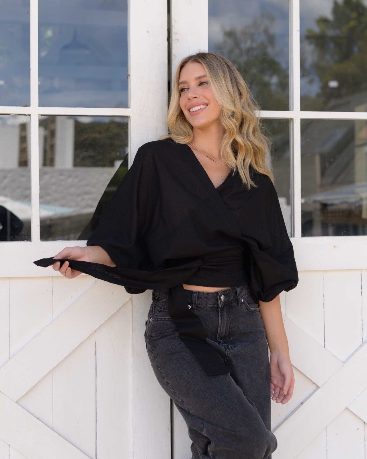 La blusa Sunset Palmas, elaborada en lino, combina un diseño de manga larga con un molde amplio que garantiza comodidad y estilo. Se ajusta delicadamente al cuerpo mediante tiras de amarre en la cintura y puños elásticos, ofreciendo un equilibrio perfecto entre sofisticación y libertad de movimiento.
