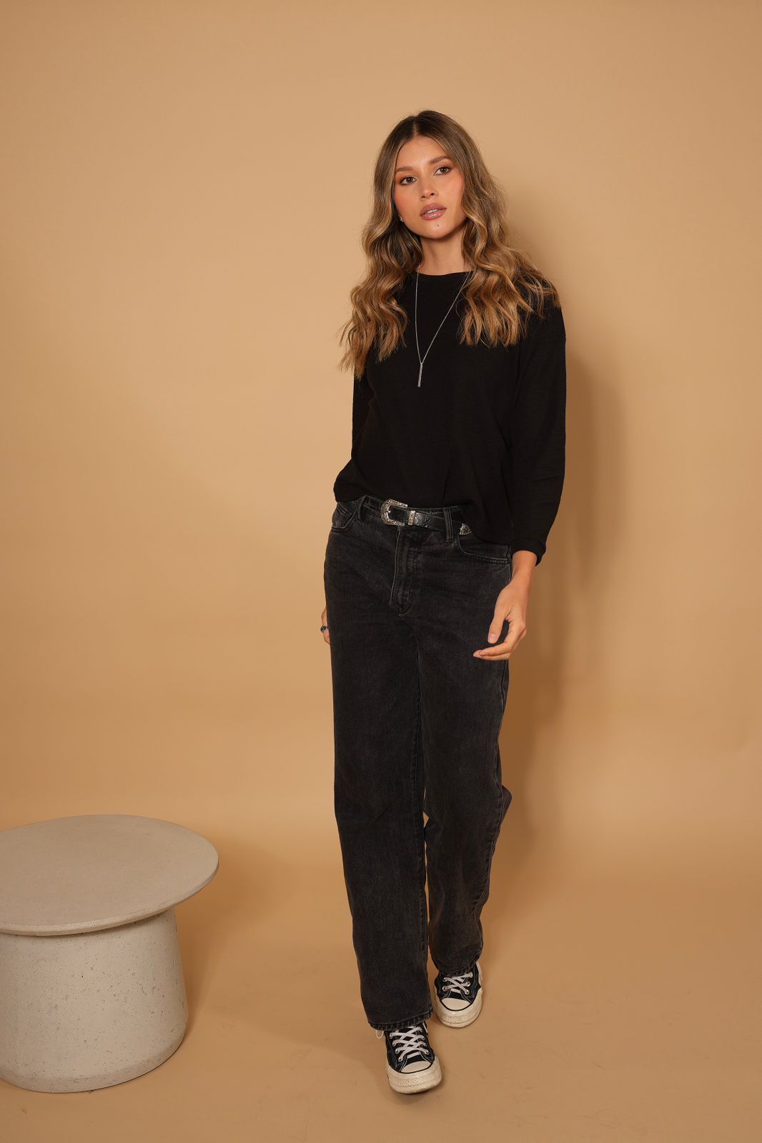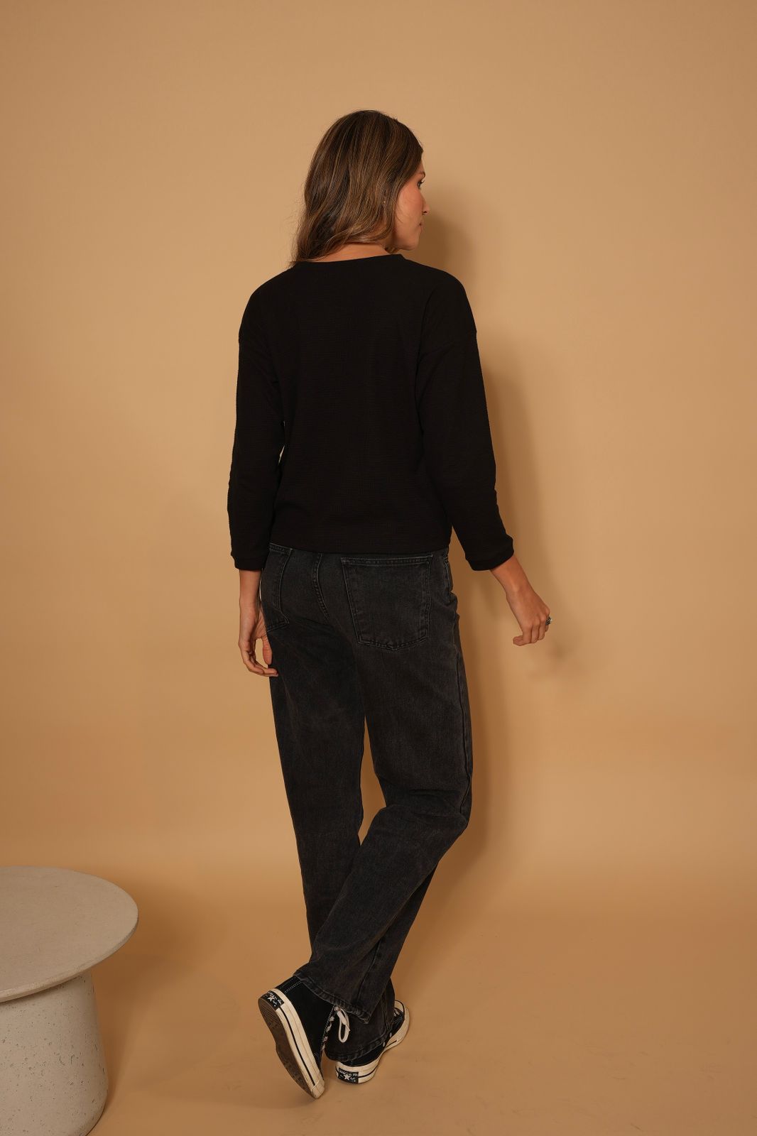 Conquista el día con estilo y actitud. El buzo Pale de cuello redondo, en tela tejido punto liviana acanalada, te envuelve en comodidad mientras ilumina tu look con su diseño único.