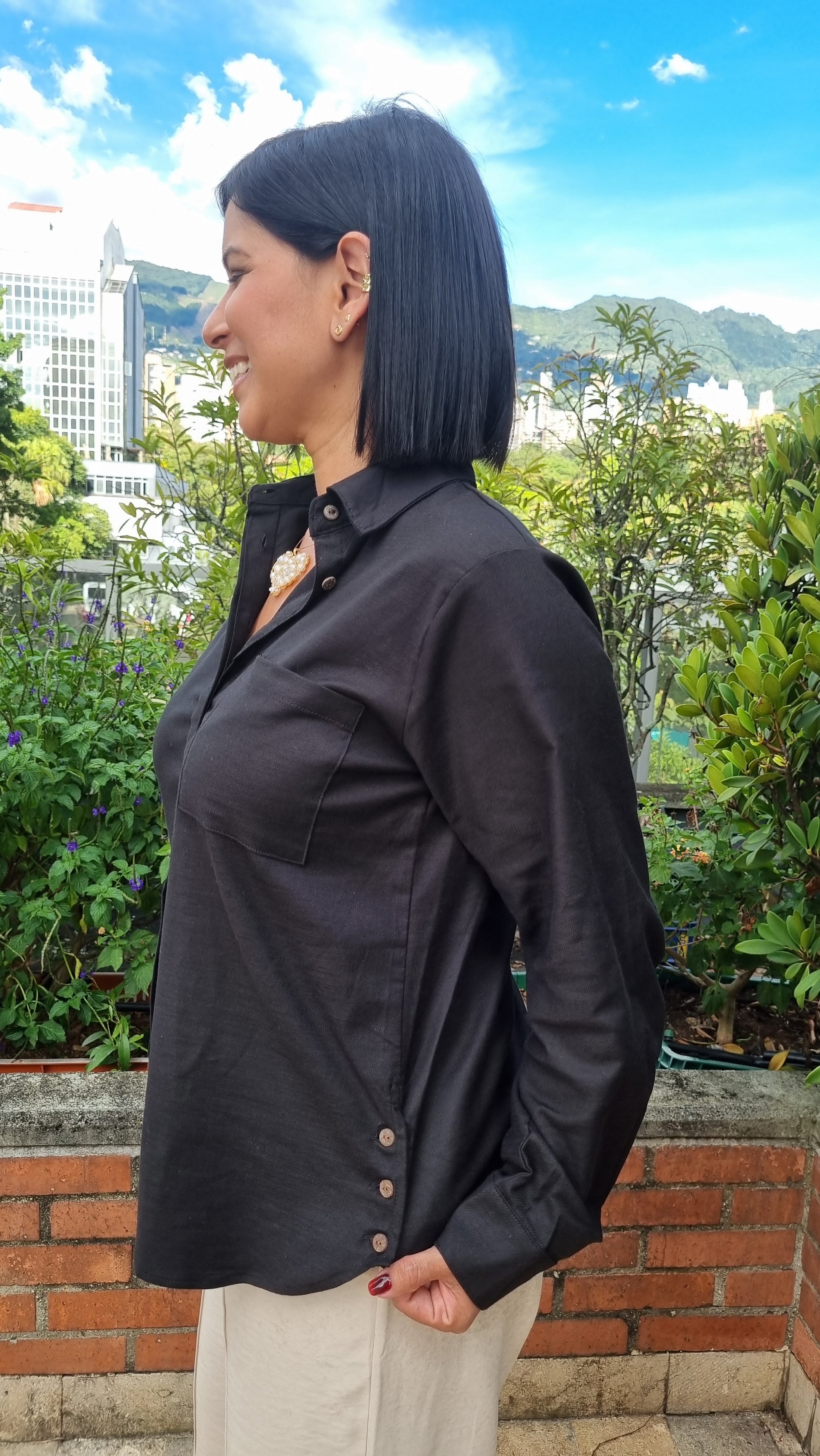 Frescura clásica para todos tus días. Confeccionada en lino, la camisa Boston es la prenda que eleva tu look sin esfuerzo. Su diseño clásico con botones funcionales te permite usarla como camisa o sobrecamisa, adaptándose a tu estilo y a cada ocasión.