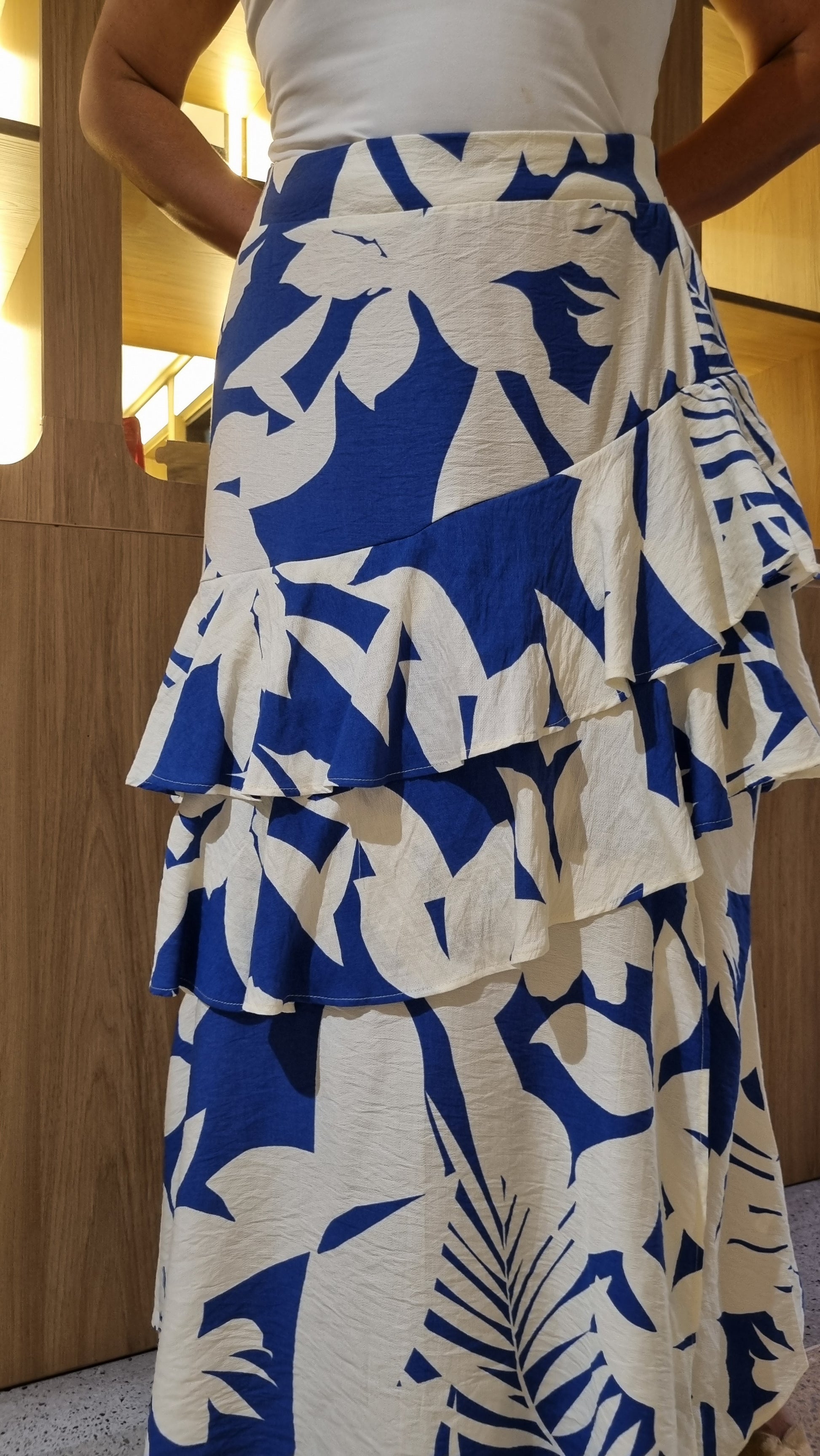 Atrévete a destacar con esta falda de boleros en un estampado único que combina estilo, frescura y movimiento. Confeccionada en tejido suave de rayón con nylon, Su diseño fluido y sutil hacen que sea perfecta para looks relajados con un toque atrevido. Combínala con tenis para un outfit casual chic o con sandalias para elevar tu estilo.