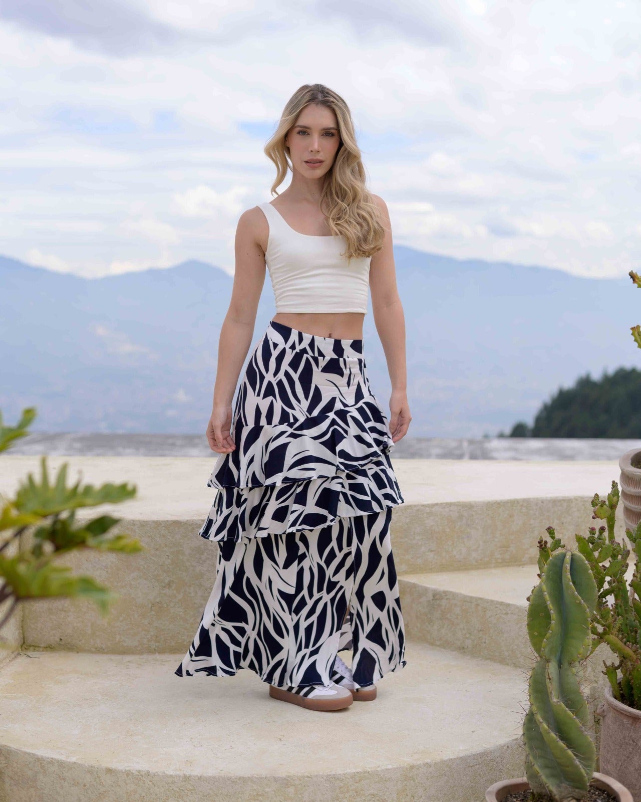 Atrévete a destacar con esta falda de boleros en un estampado único que combina estilo, frescura y movimiento. Su diseño fluido y sutil hacen que sea perfecta para looks relajados con un toque atrevido. Combínala con tenis para un outfit casual chic o con sandalias para elevar tu estilo.