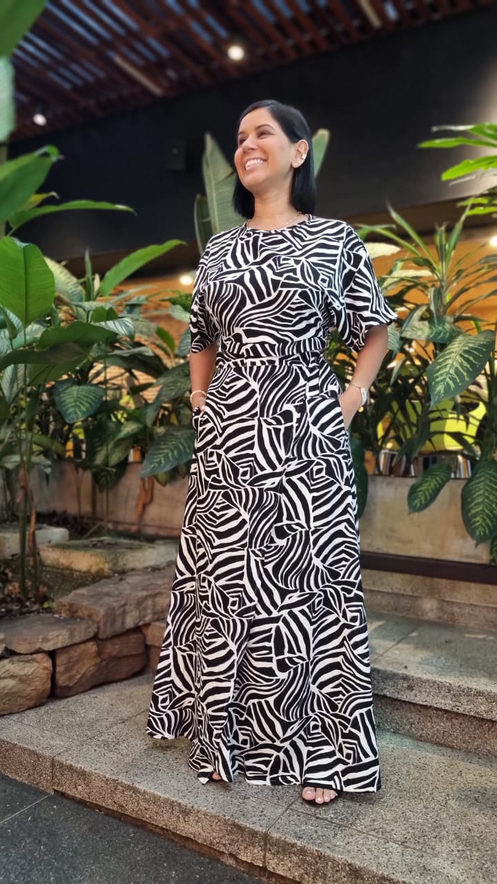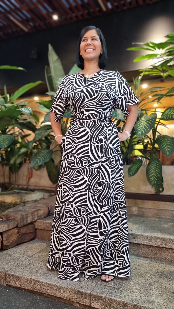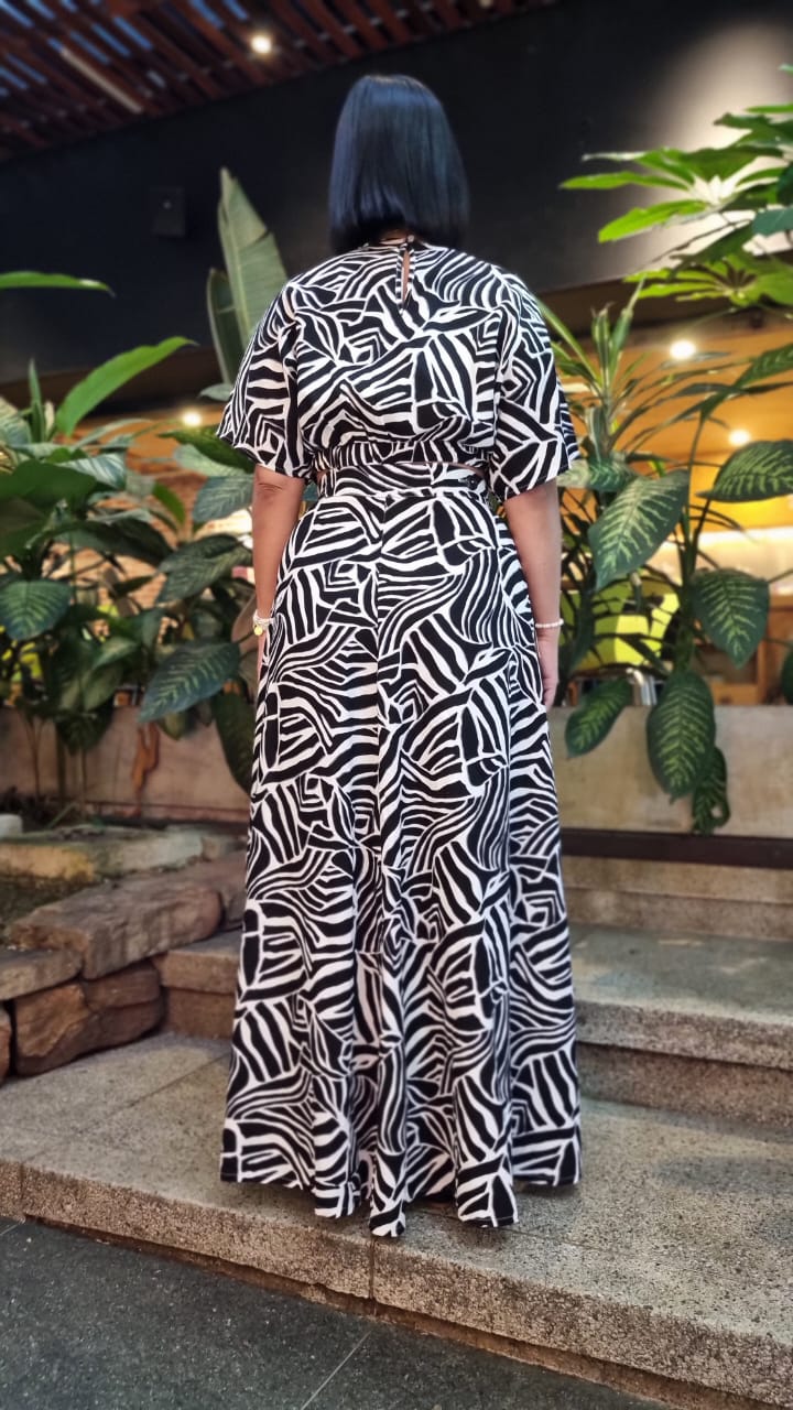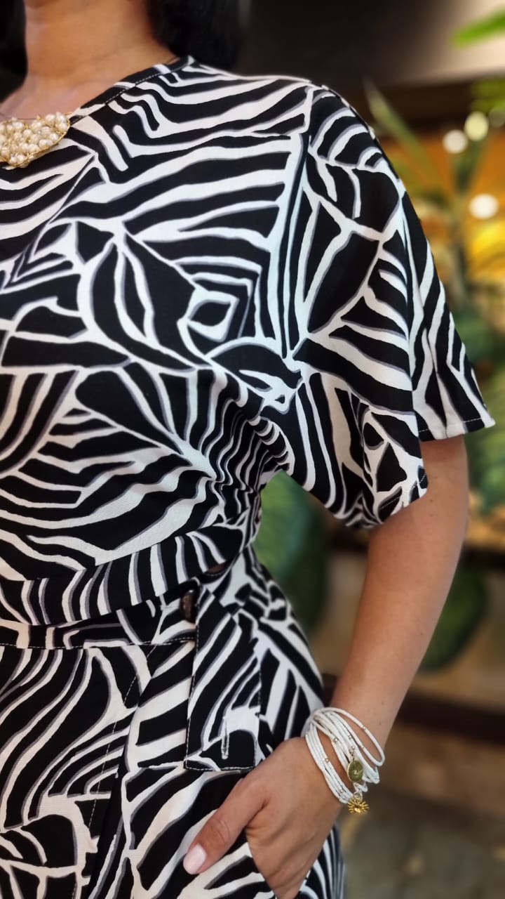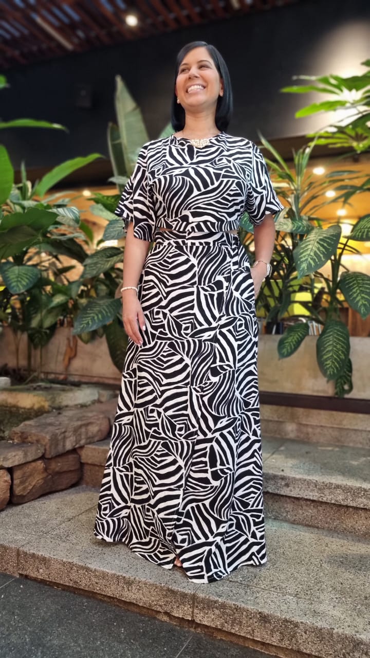 Este set con falda es una joya exclusiva de nuestra marca: confeccionado en lino liviano y fresco, con un estampado orgánico que respira estilo y autenticidad.