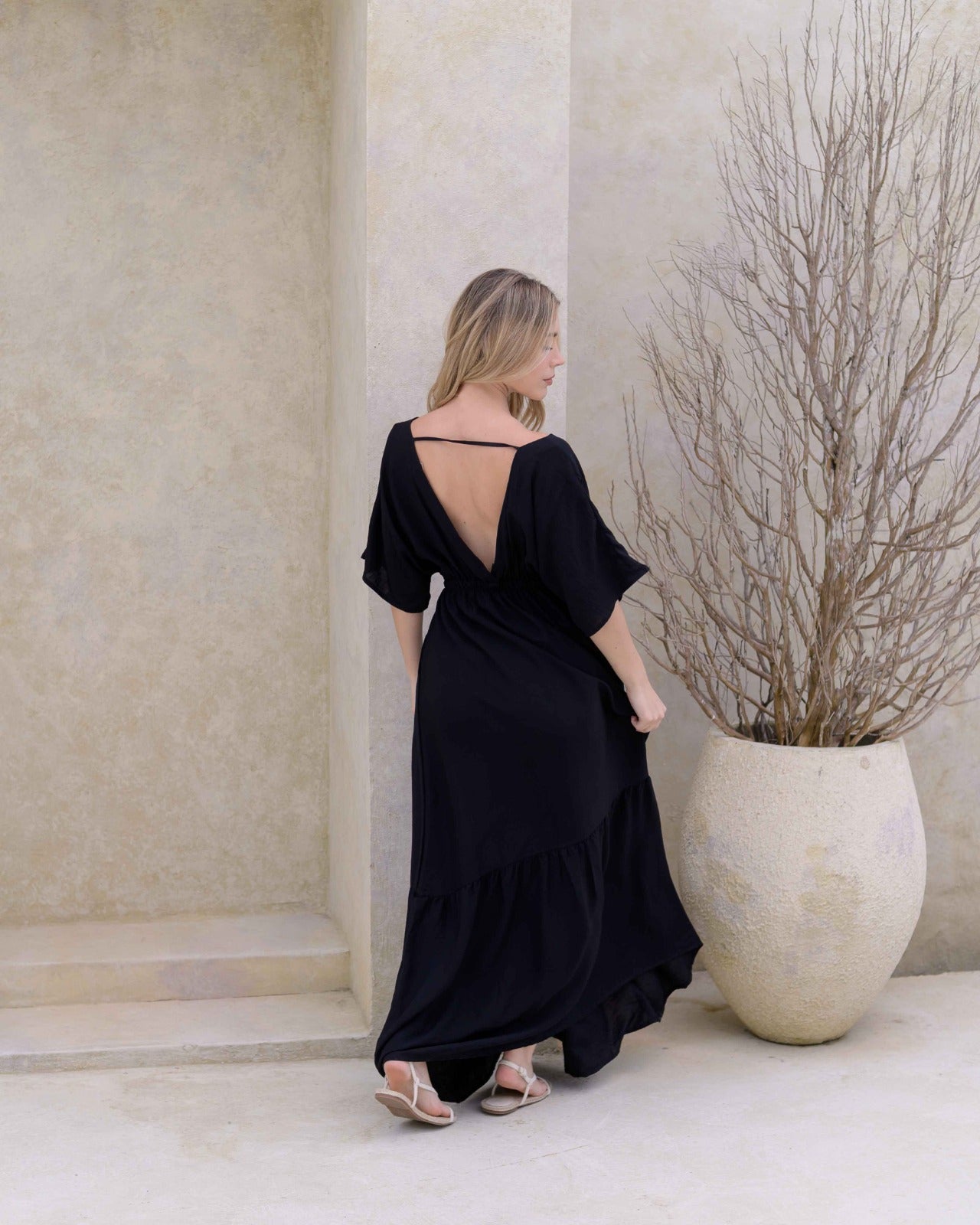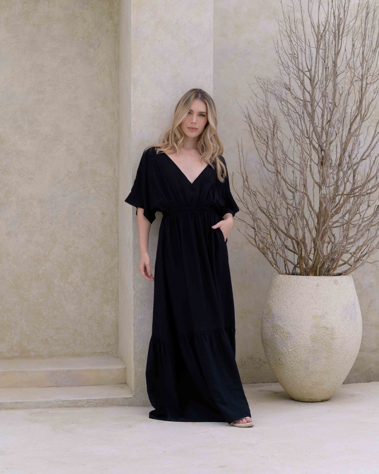 Exclusivo y práctico Vestido, con su corte largo y tejido suave de 100% rayón, te brinda comodidad y estilo sin sacrificar elegancia. Con bolsillos laterales, es una obra de arte que te hará destacar en cualquier ocasión.