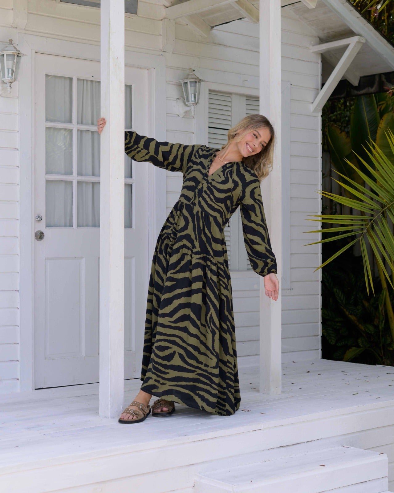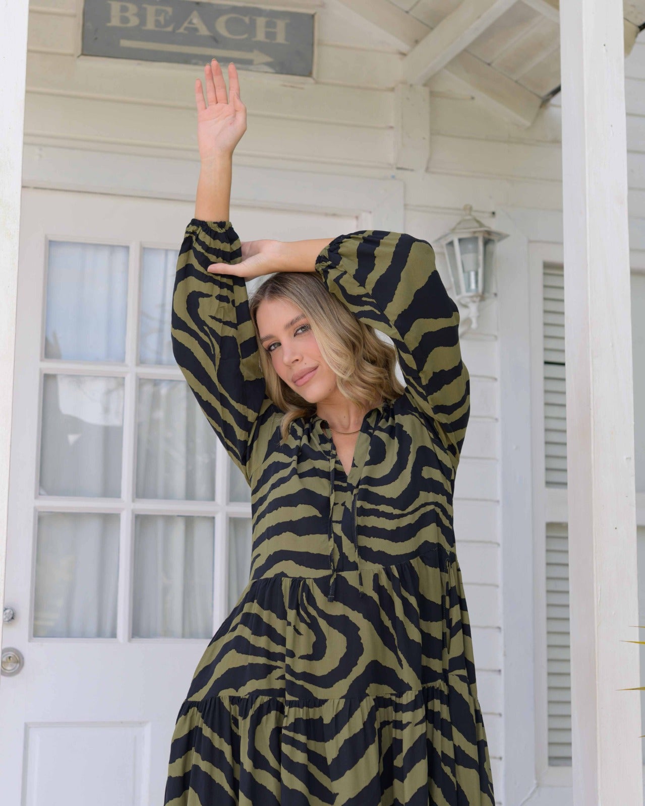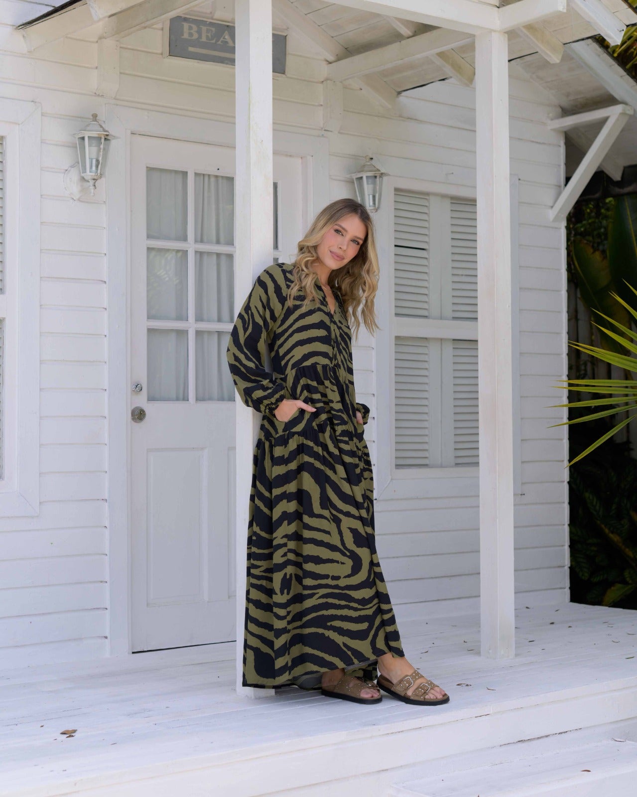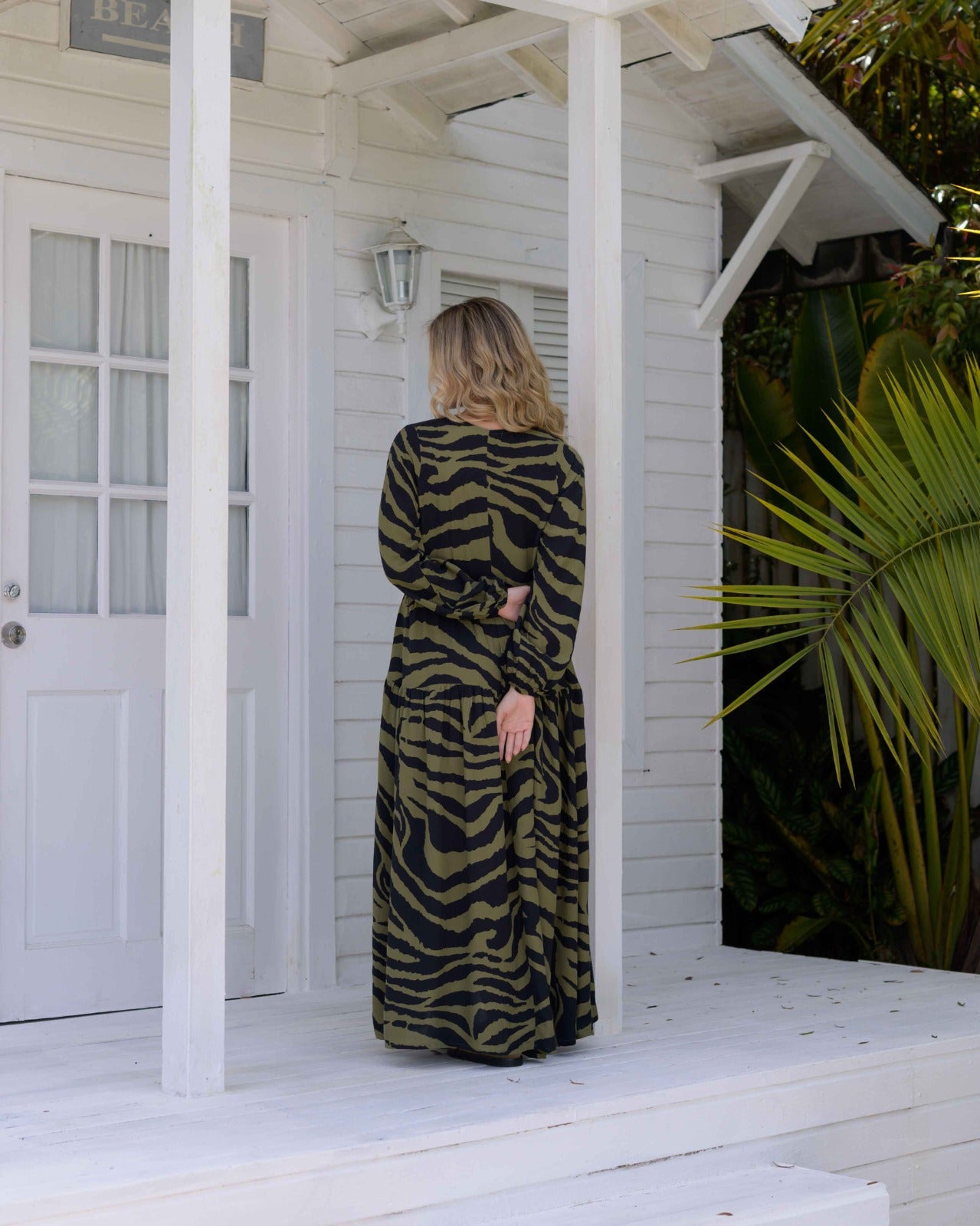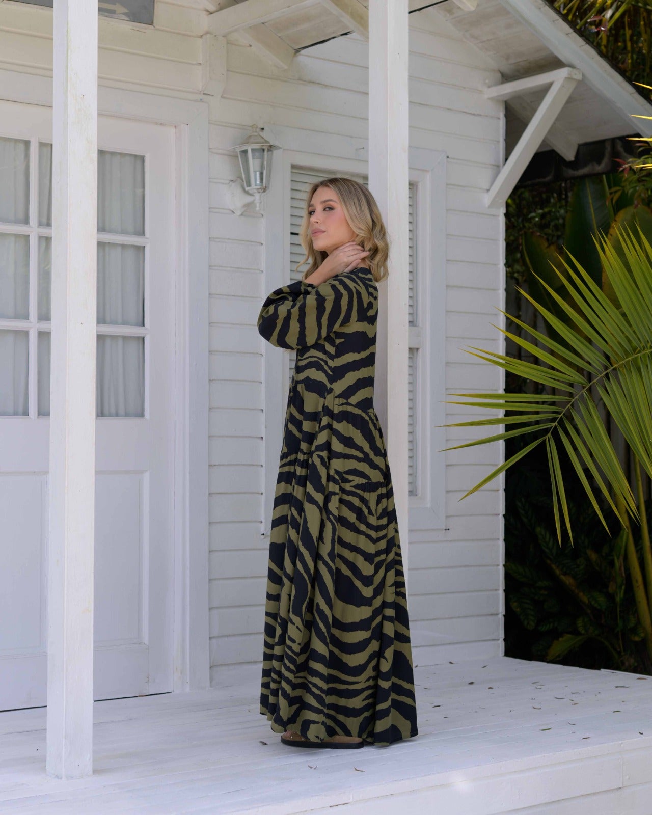 El vestido Eloísa se caracteriza por tener una silueta amplia que te brinda comodidad, su estampado único te harán querer usarlo en tú día a día. Confeccionada en rayón suave con caída.