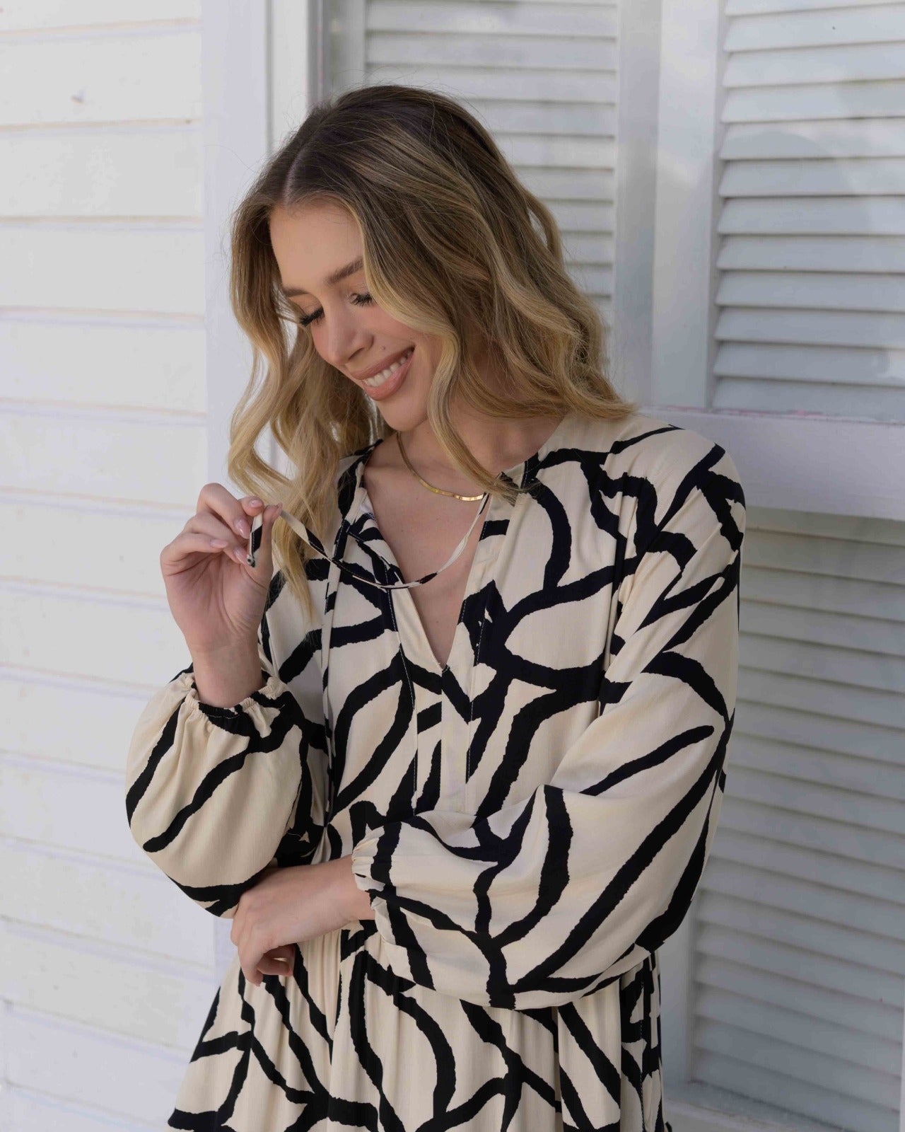 El vestido Eloísa se caracteriza por tener una silueta amplia que te brinda comodidad, su estampado único te harán querer usarlo en tú día a día. Confeccionada en rayón suave con caída.
