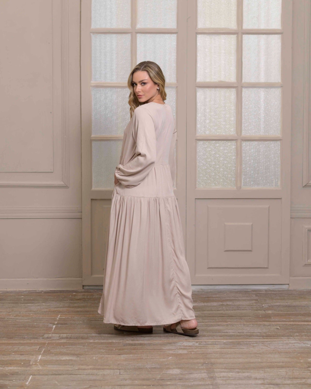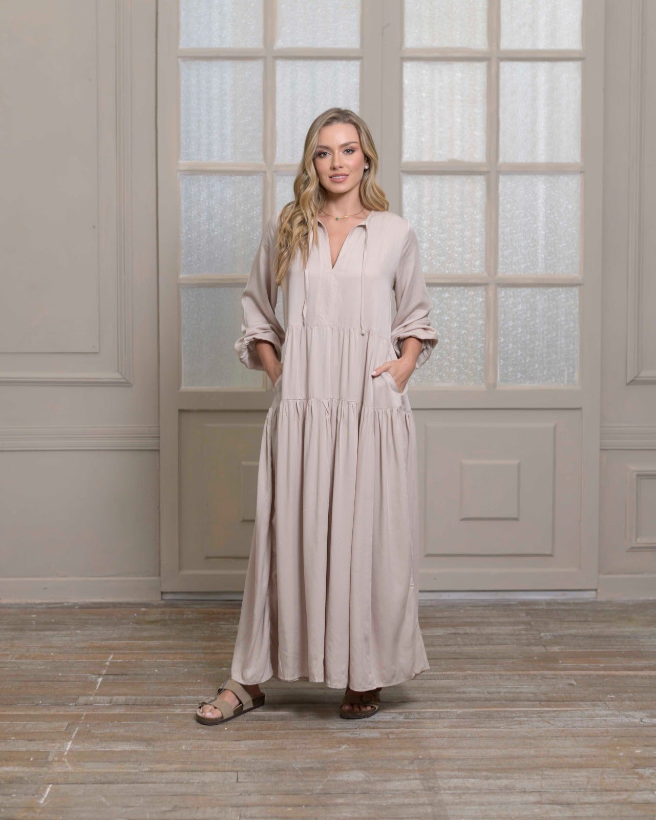 El vestido Eloísa se caracteriza por tener una silueta amplia que te brinda comodidad, en un tono delicado que te harán querer usarlo en tú día a día. Confeccionada en rayón suave con caída.