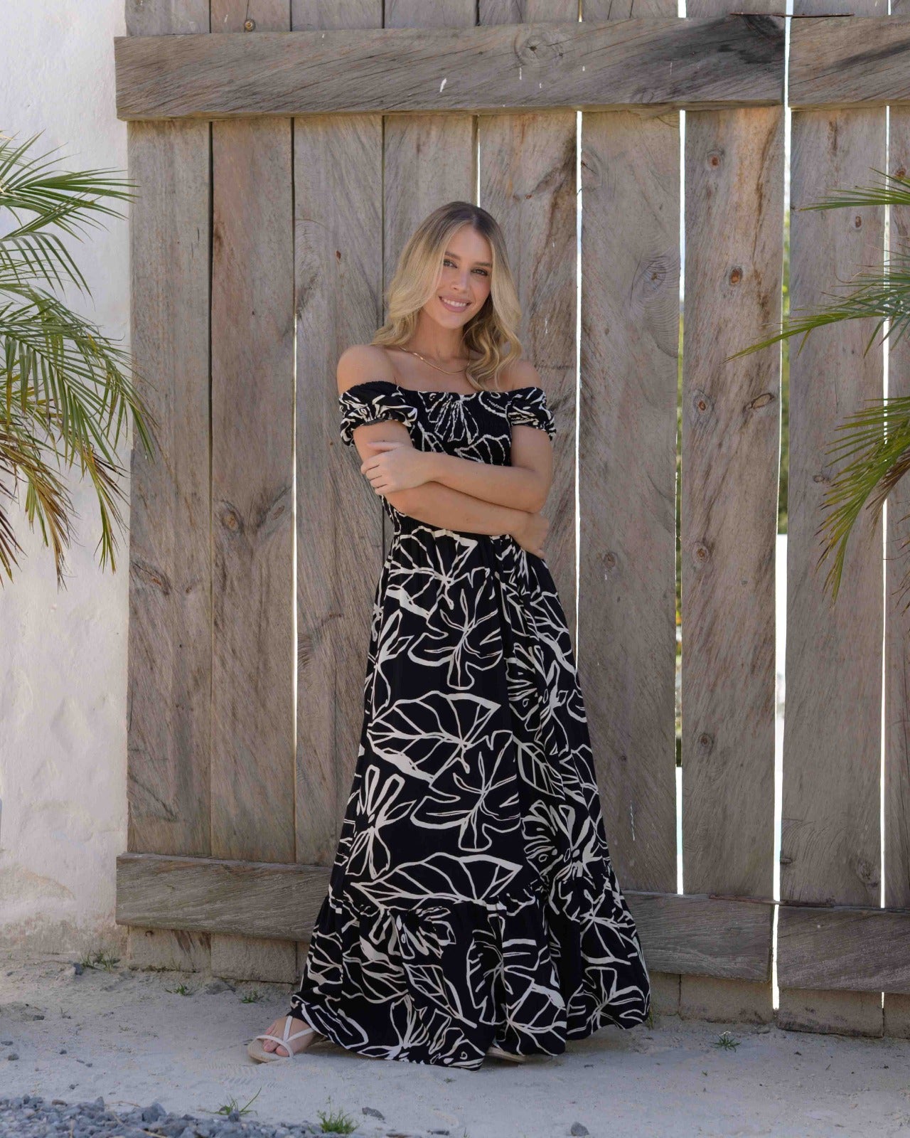 Este vestido largo destaca por su diseño enresortado que realza el contorno del busto, ofreciendo un ajuste elegante y cómodo.