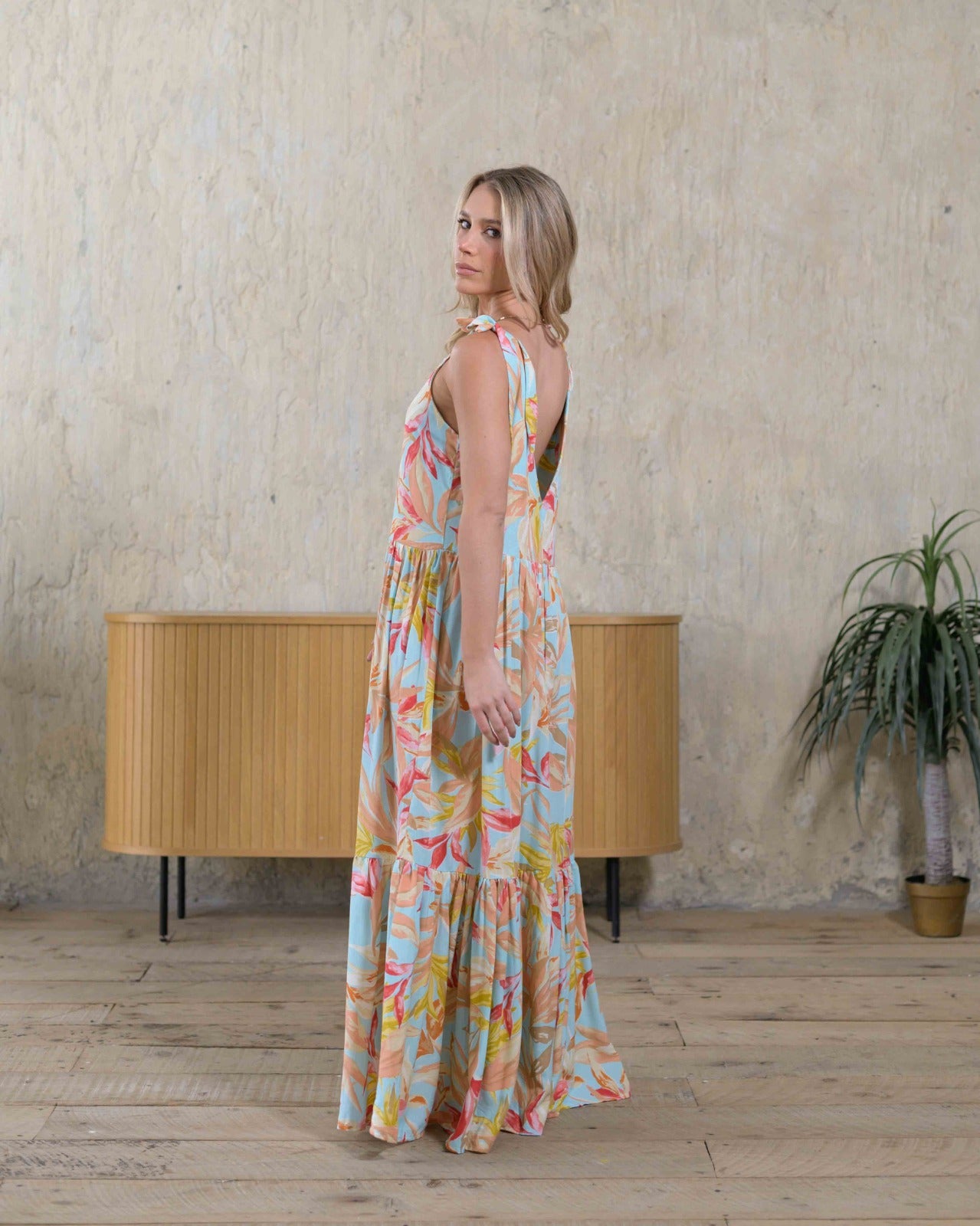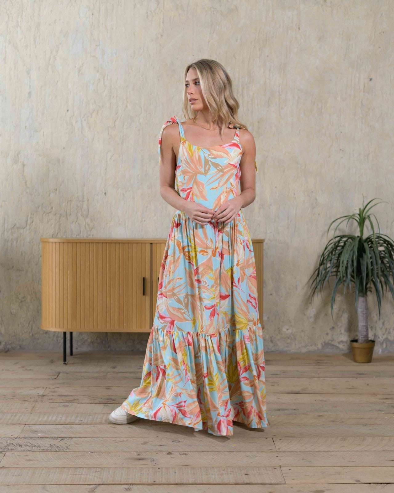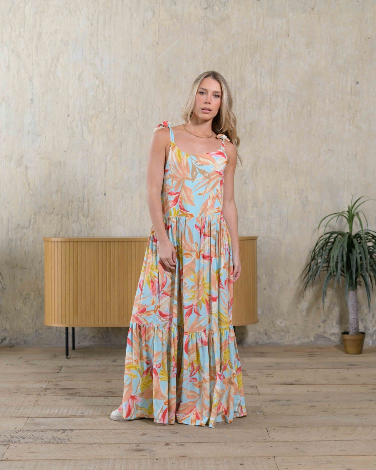 Exclusivo y práctico Vestido, con su corte largo y tejido suave de 100% rayón, te brinda comodidad y estilo sin sacrificar elegancia. Con bolsillos laterales, es una obra de arte que te hará destacar en cualquier ocasión.
