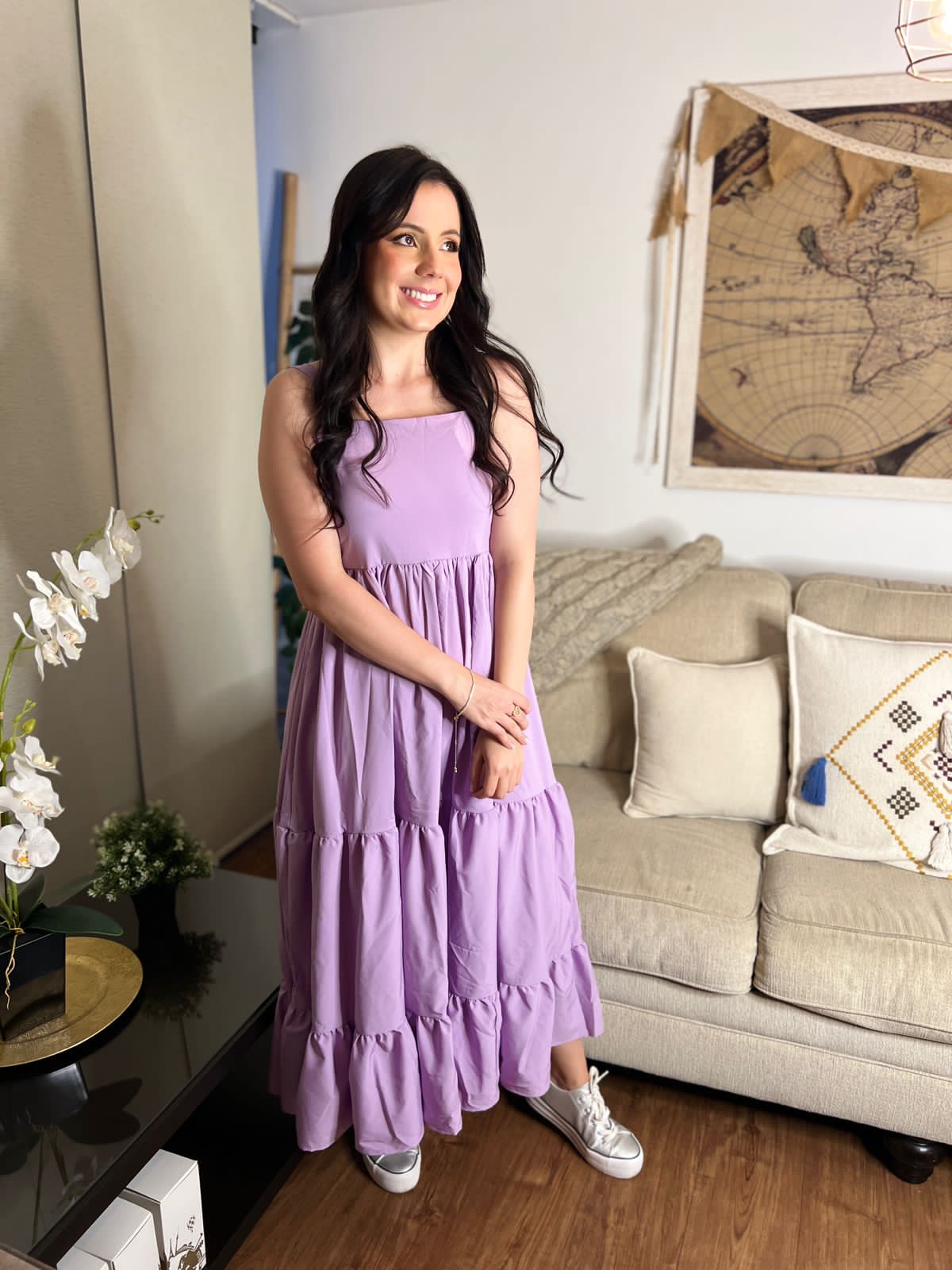 Este vestido unicolor en tono lila es todo lo que necesitas para destacar con elegancia en los días más cálidos. Su corte en A y tiras gruesas aportan comodidad y un toque moderno, mientras su largo sutil lo hace ideal para un brunch, una salida con amigas o un paseo bajo el sol.