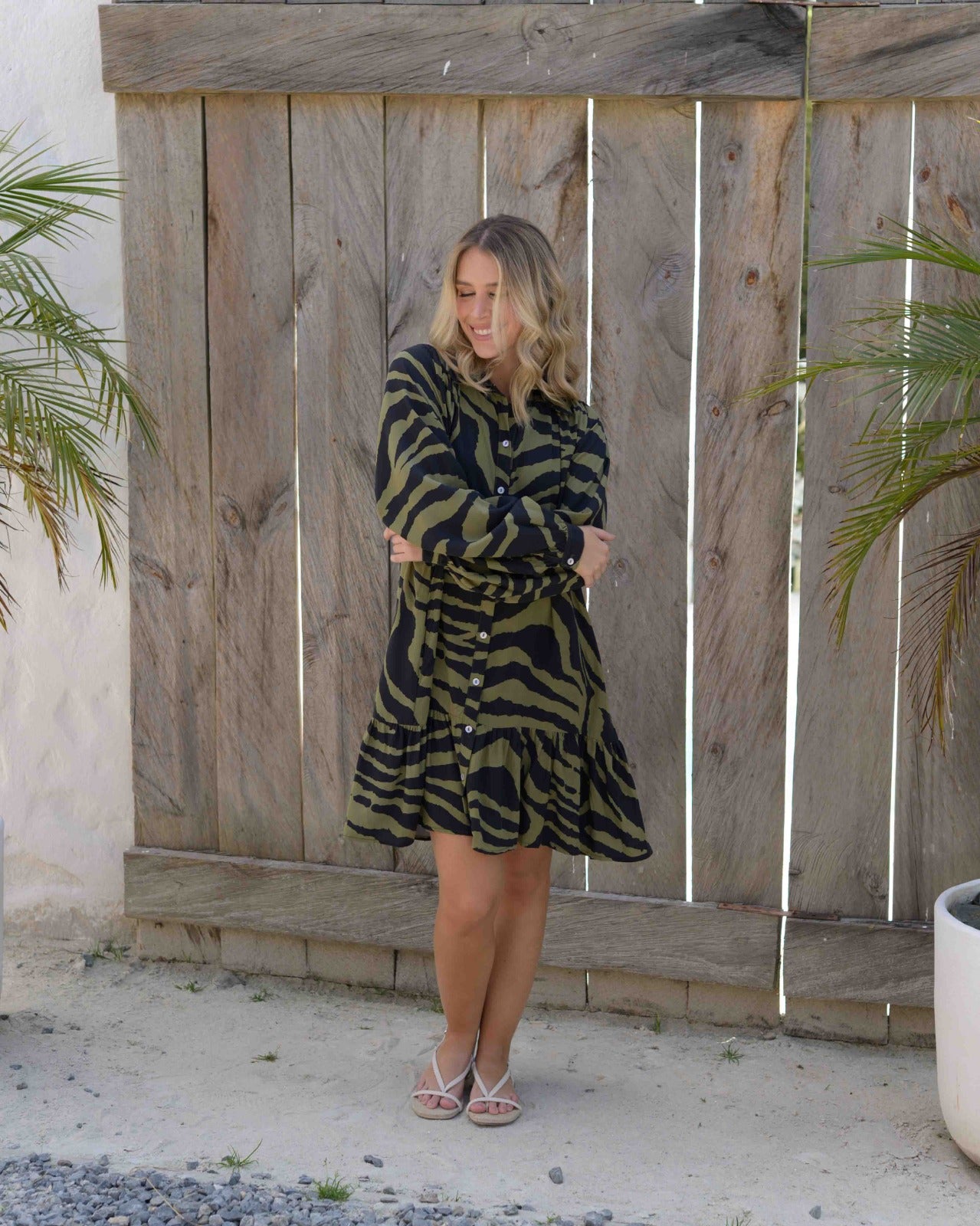 Este vestido Yasmin , confeccionado en 100% rayón, destaca por su elegante cuello y prácticos bolsillos laterales que combinan estilo y funcionalidad. Los botones delanteros funcionales añaden un detalle delicado que realza su diseño, ideal para quienes buscan una prenda sofisticada y cómoda en cualquier ocasión.